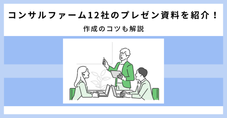 本記事では、戦略系、IT系、総合系、シンクタンク系のコンサル会社のプレゼン資料を紹介!その特徴や効果的な資料作成のコツを解説します。
