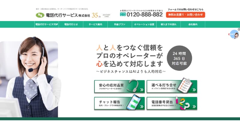 | 特徴 | ・オーダーメイド型電話代行 ・30年以上蓄積されたノウハウ ・24時間365日対応可能 |
