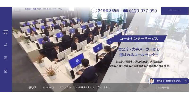 セントラル・アイ株式会社は、豊富な実績を持つ老舗のカスタマーサポート会社です。さまざまな企業や官公庁に電話代行・秘書代行およびコールセンター代行サービスを提供しています。