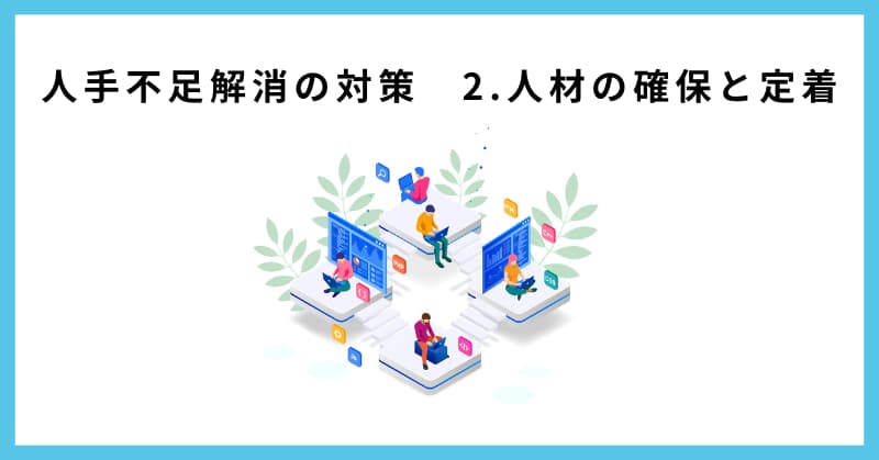 人手不足を解消するには、「人材確保」と「業務効率化」がポイントです。