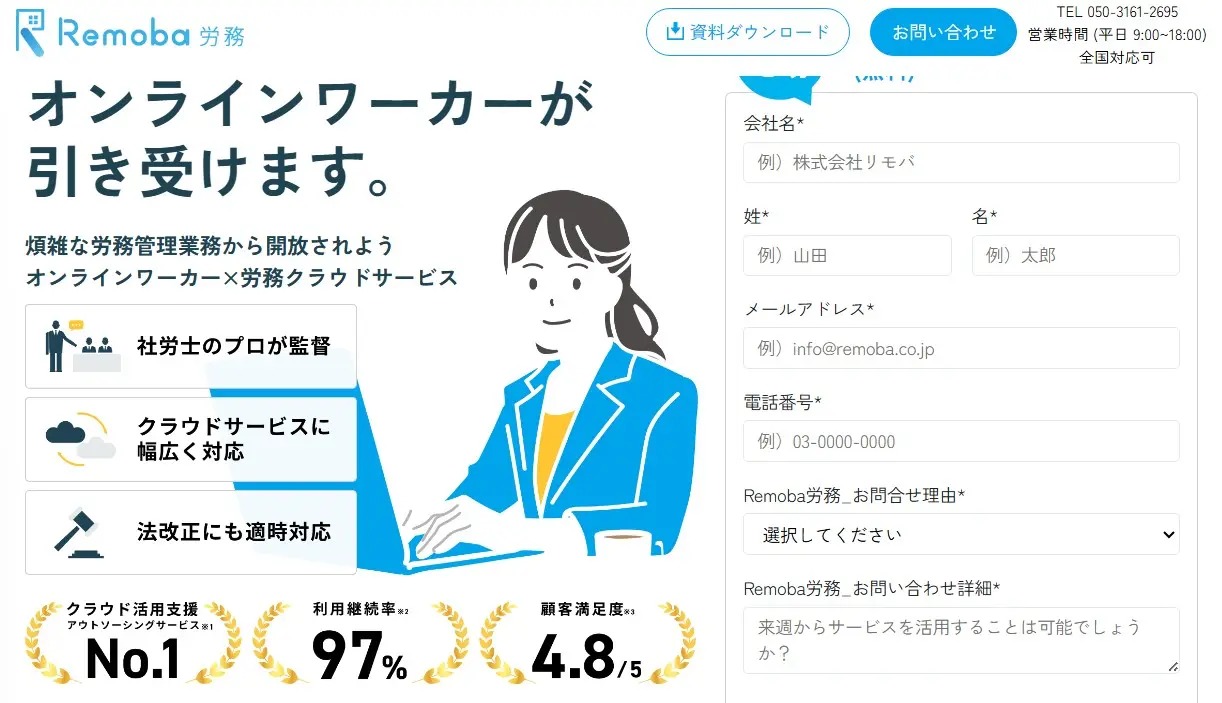 | Remoba労務 | ・各種クラウドサービスに対応 ・社労士と提携して法改正も迅速にサポート |