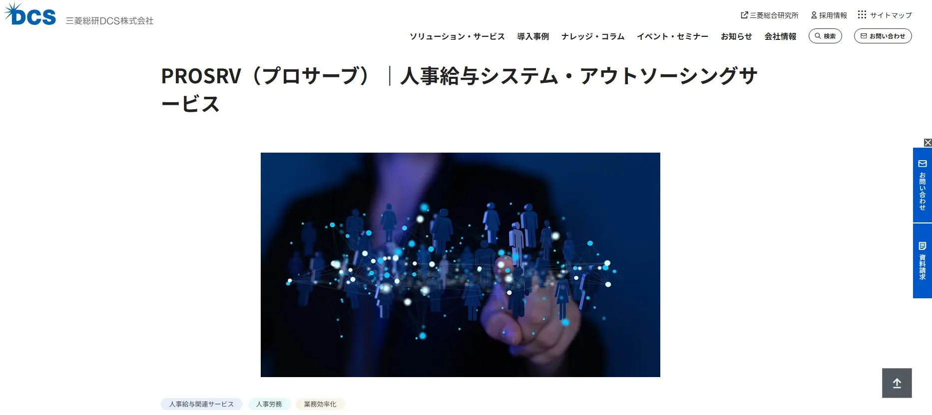 三菱総研DCS株式会社が提供している「PROSRV(プロサーブ)」は、クラウド型の人事給与システムをベースに、人事給与業務を支援するサービスです。年末調整や地方税年度更新などのスポット業務から、日々の人事給与業務全般まで委託できます。