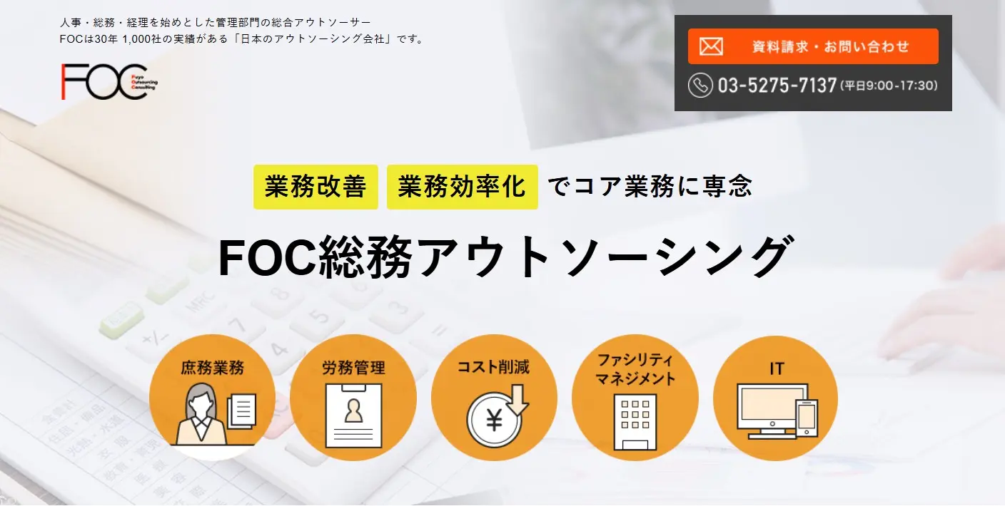 | FOC総務アウトソーシング | ・総務に特化した運用責任者が担当 ・属人化している業務をマニュアル作成により平準化 |