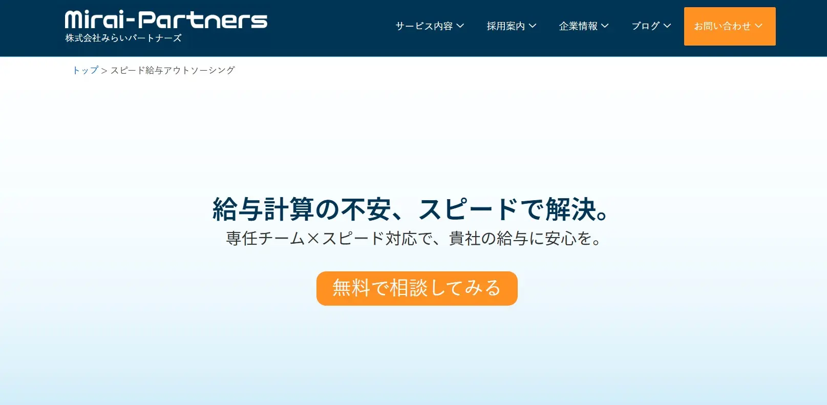 株式会社みらいパートナーズは、給与処理や勤怠集計処理、賞与、年末調整、Web明細などに対応しています。専任チーム制を採用しており、過去の対応履歴を蓄積しながら業務を進めることが可能です。