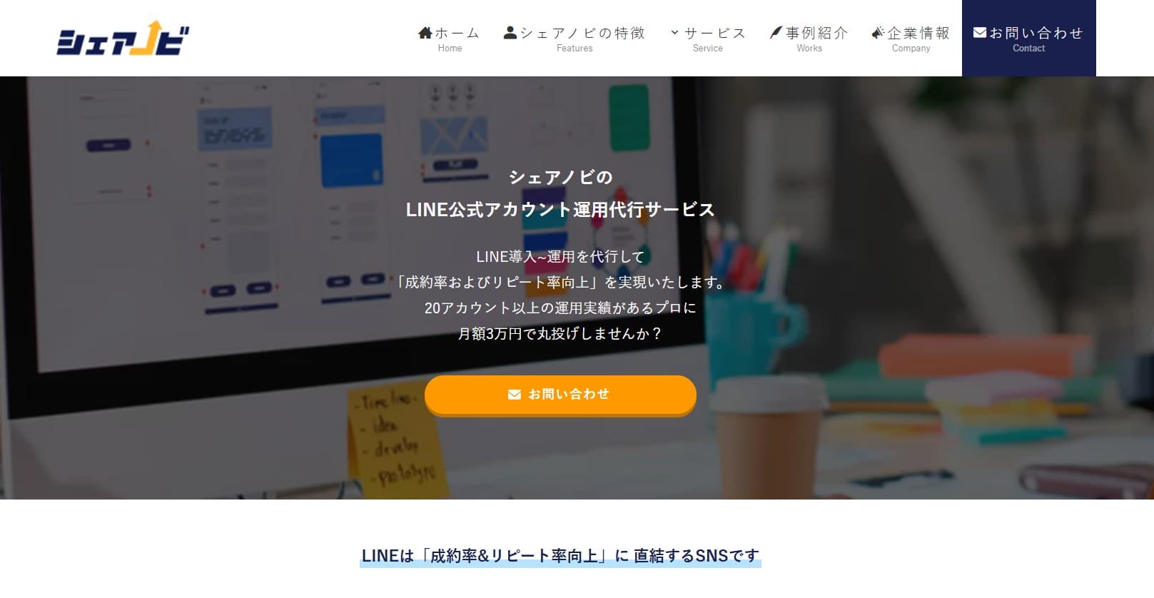 | 株式会社シェアコト | ・LINE運用からキャンペーン、レポートまで一括支援 ・大手企業や外資系企業との実績が豊富 |