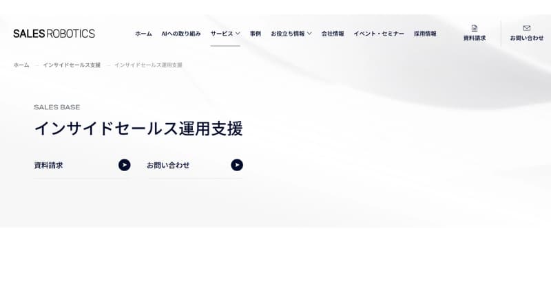 | SALES ROBOTICS | ・AIやテクノロジーを活用 ・クラウド型の営業支援「SALES BASE」を提供 |