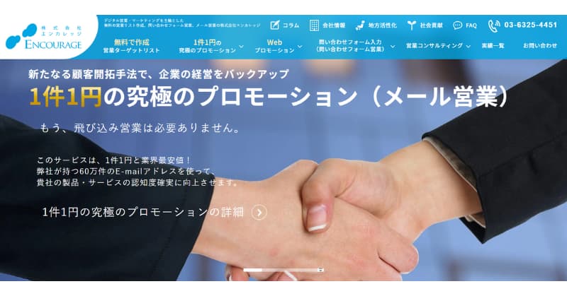| 対応可能業務 | ・営業リストの抽出 ・FAXDM発送代行 ・テレアポ営業代行 ・DM郵送代行 ・首都圏DM ・問い合わせフォーム営業代行 |