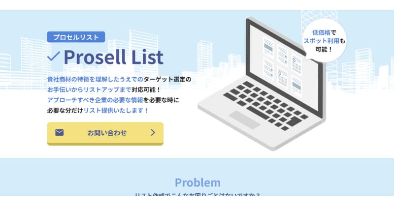 | HELP YOU | ・国内最大級DBから最新の企業情報を収集・信頼性の高い営業リストを作成 ・大量のデータも短期で納品可能 ・営業事務やバックオフィス業務にも対応 |