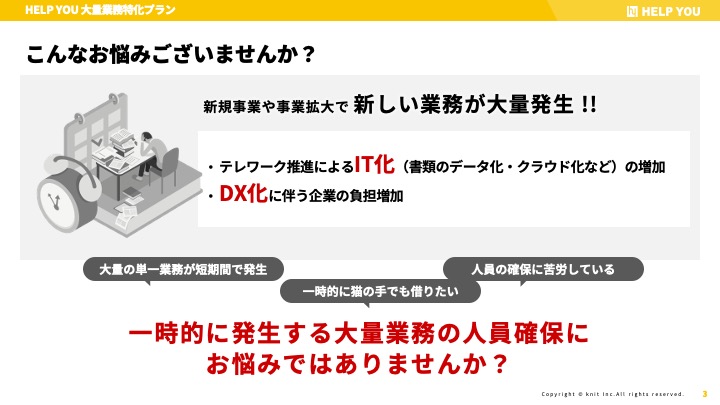 HELP YOUのサービスをお伝えする資料から、仕事術のノウハウまで